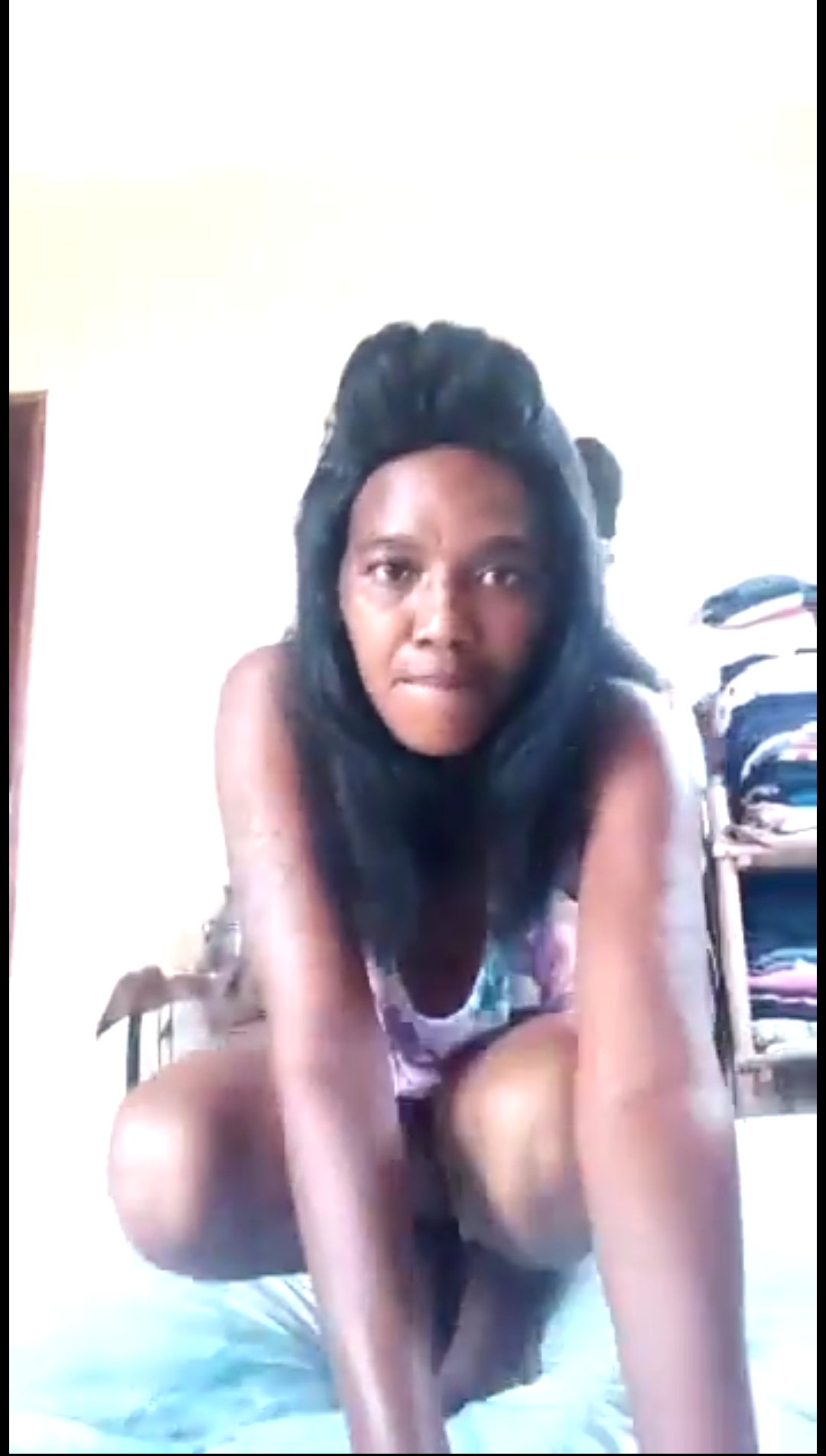 • Twerking and showing off her coochie from behind