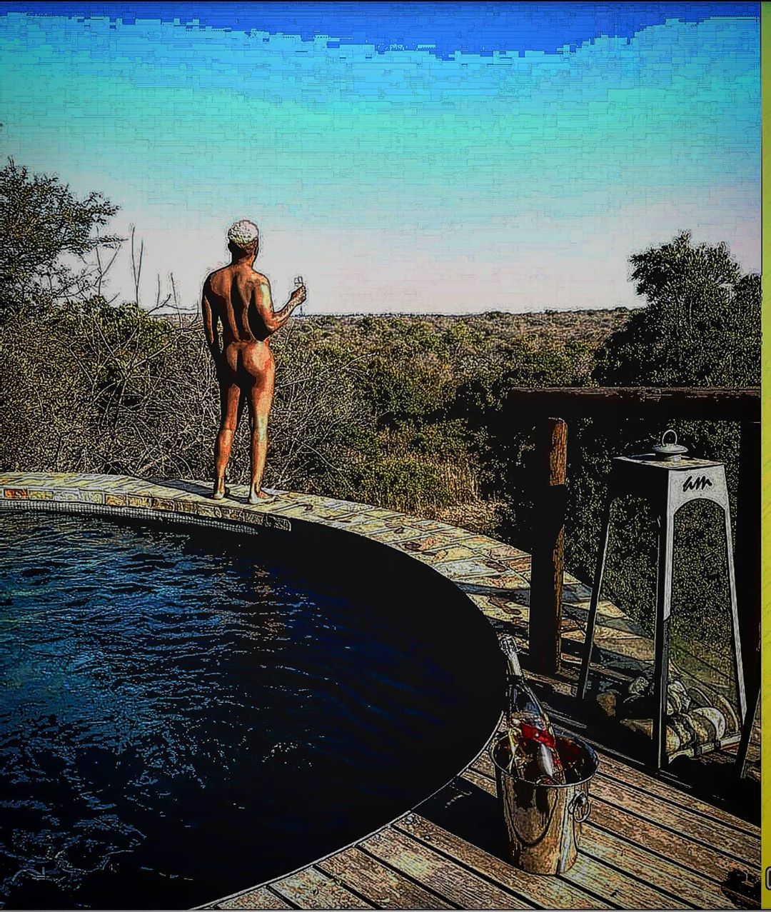 The South African Idols judge, TV host, and media personality showed off his bare ass as he was playing around in the swimming pool.